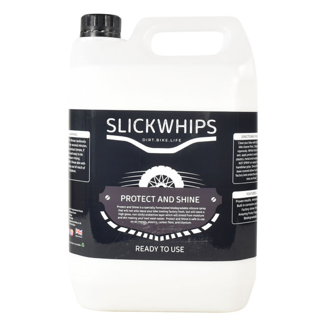 Protect and Shine is a specially formulated silicone spray that will not only leave your bike looking factory fresh, but will leave a high gloss, non sticky protective layer which will help fight off moisture and dirt making your next wash easier. With built-in corrosion protection for all metals to prevent rusting and oxidisation protect and shine is safe to use on all plastics, metals, carbon fibre, and titanium.  Also available in 1L spray bottle and 25L refill.